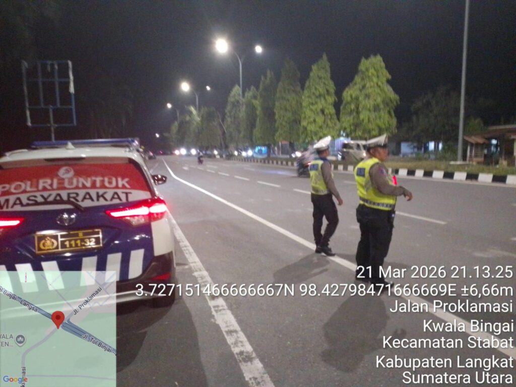 Langkat ,METRO EKSPRES | Dalam rangka menjaga situasi keamanan dan ketertiban masyarakat (Kamtibmas) serta menciptakan keamanan, keselamatan, ketertiban, dan kelancaran lalu lintas (Kamseltibcarlantas), Satuan Lalu Lintas Polres Langkat melaksanakan kegiatan patroli blue light pada Sabtu malam (21/3/2026).